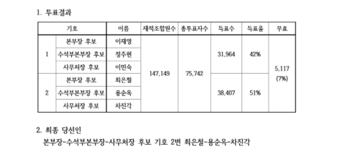 재선거가 잘 실시되도록 투표에 참여하신 조합원께 감사드립니다.