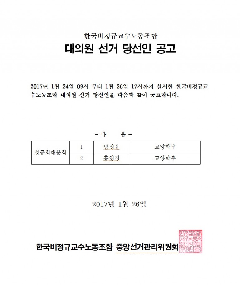조합 대의원선거 당선인 공고 페이지 정보 작성자 관리자 작성일17-01-26 18:24 조회8,661회 댓글0건 이전글 다음글 목록 본문 조합 대의원선거 당선인 공고 추천 0 댓글목록 등록된 댓글이 없습니다. 이전글 다음글 목록