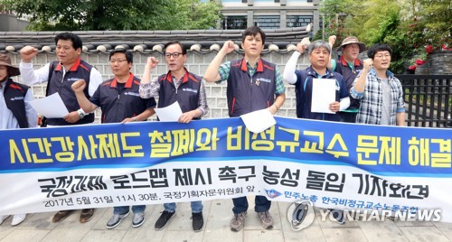 임순광 한국비정규교수노동조합 위원장은 "주 5∼6시간 강의하는 강사를 비롯한 비전임 교원에게도 교원 자격을 부여하는 등 시간강사 처우 개선을 위한 실질적 대책이 필요하다"며 "내년 5월까지 새 법안 초안이 나오지 않으면 다양한 이해관계가 얽혀 문제 해결이 어려워질 수 있다"고 지적했다.