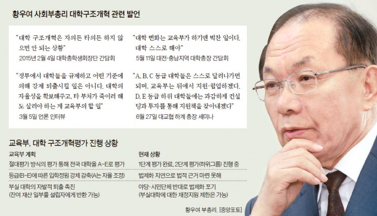 황우여 "부실대학 지원책 찾겠다" .. 대학들 "허무개그냐" - 중앙일보