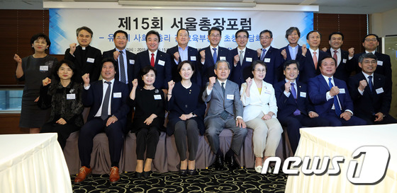 서울 소재 32개 4년제 대학의 협의체인 서울총장포럼은 18일 오후 서울 중구 프레스센터에서 유 부총리 초청 간담회를 열었다. 핵심 고등교육 현안인 강사법에 대한 상호 협력을 다짐하고 그 외 대학의 요구사항도 전하기 위한 취지의 간담회다.