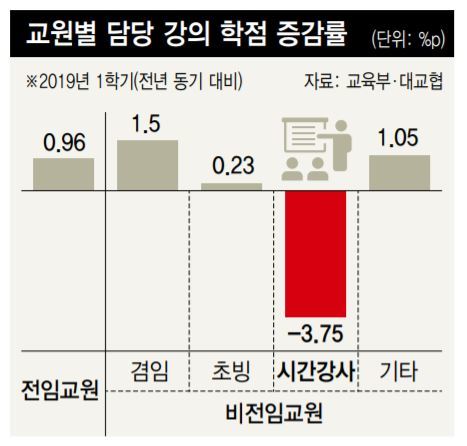 강사법 앞두고… 대학들, 시간강사 강의 비중 대폭 줄였다