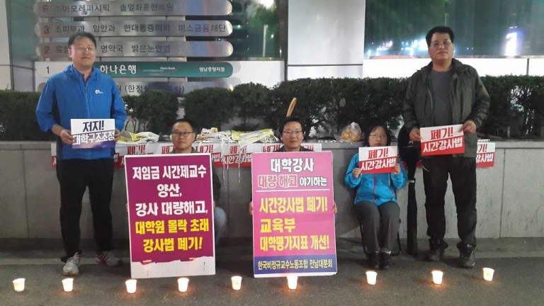 10. 20. 시간강사법 폐기 요구:교육위 의원 지역구 농성 페이지 정보 작성자 관리자 작성일15-10-26 12:15 조회2,254회 댓글0건 이전글 다음글 목록 본문 시간강사법(고등교육법 14조의2) 폐기 요구국회 교육위 야당 간사인 김태년 의원 지역구(성남 수정구) 사무소 앞 농성 추천 0 댓글목록 등록된 댓글이 없습니다. 이전글 다음글 목록